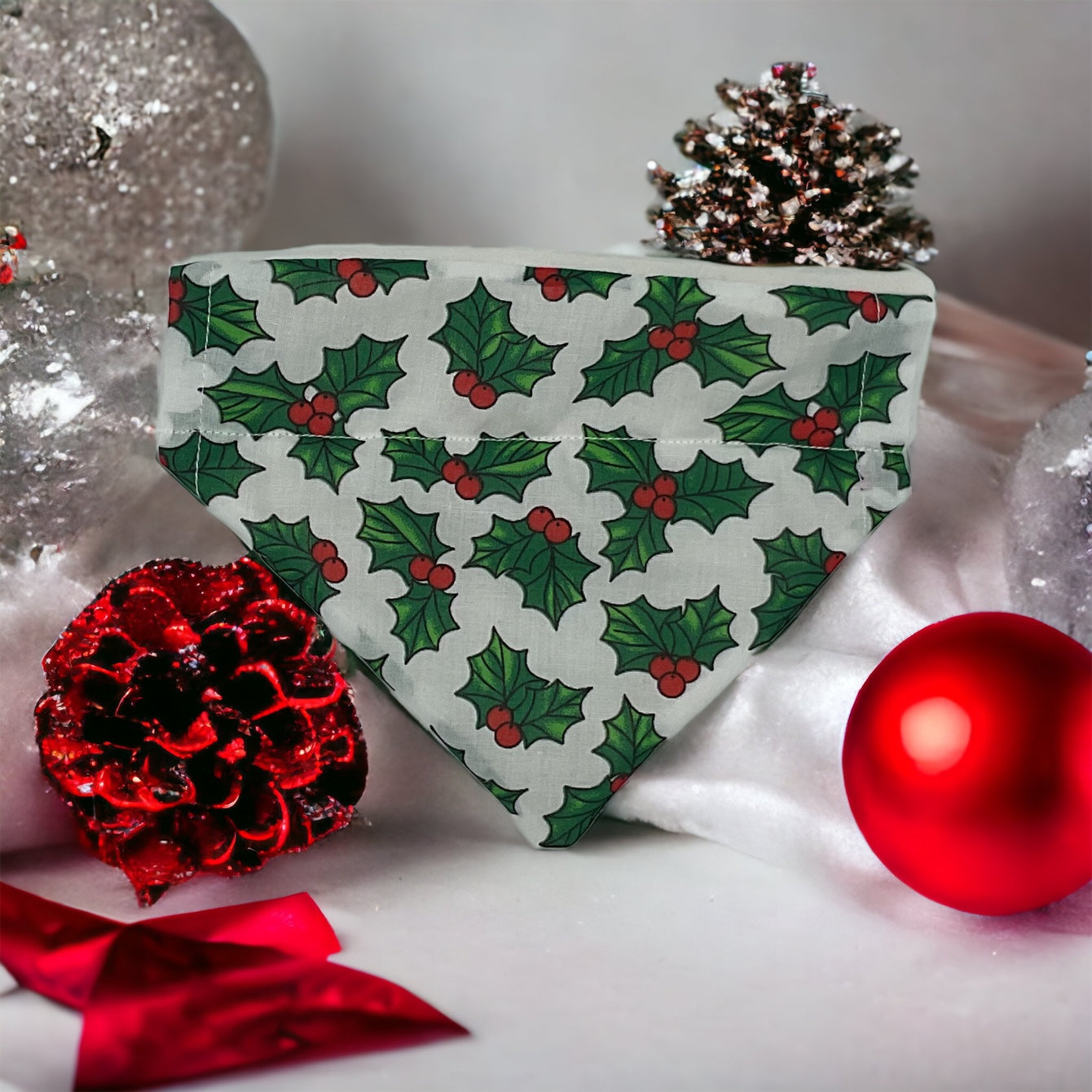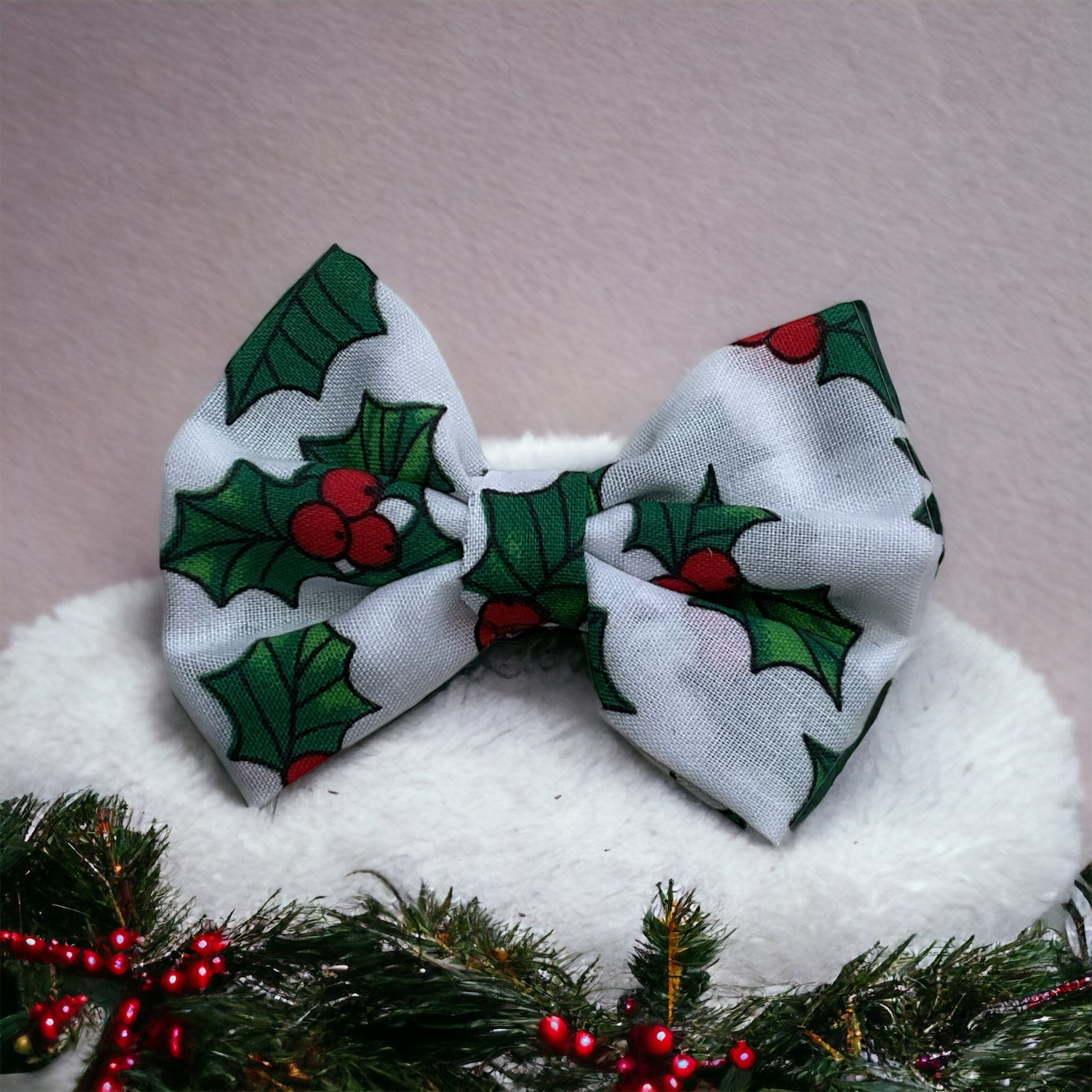 🎀 Christmas holly bow or bandana for a perfectly festive pup.