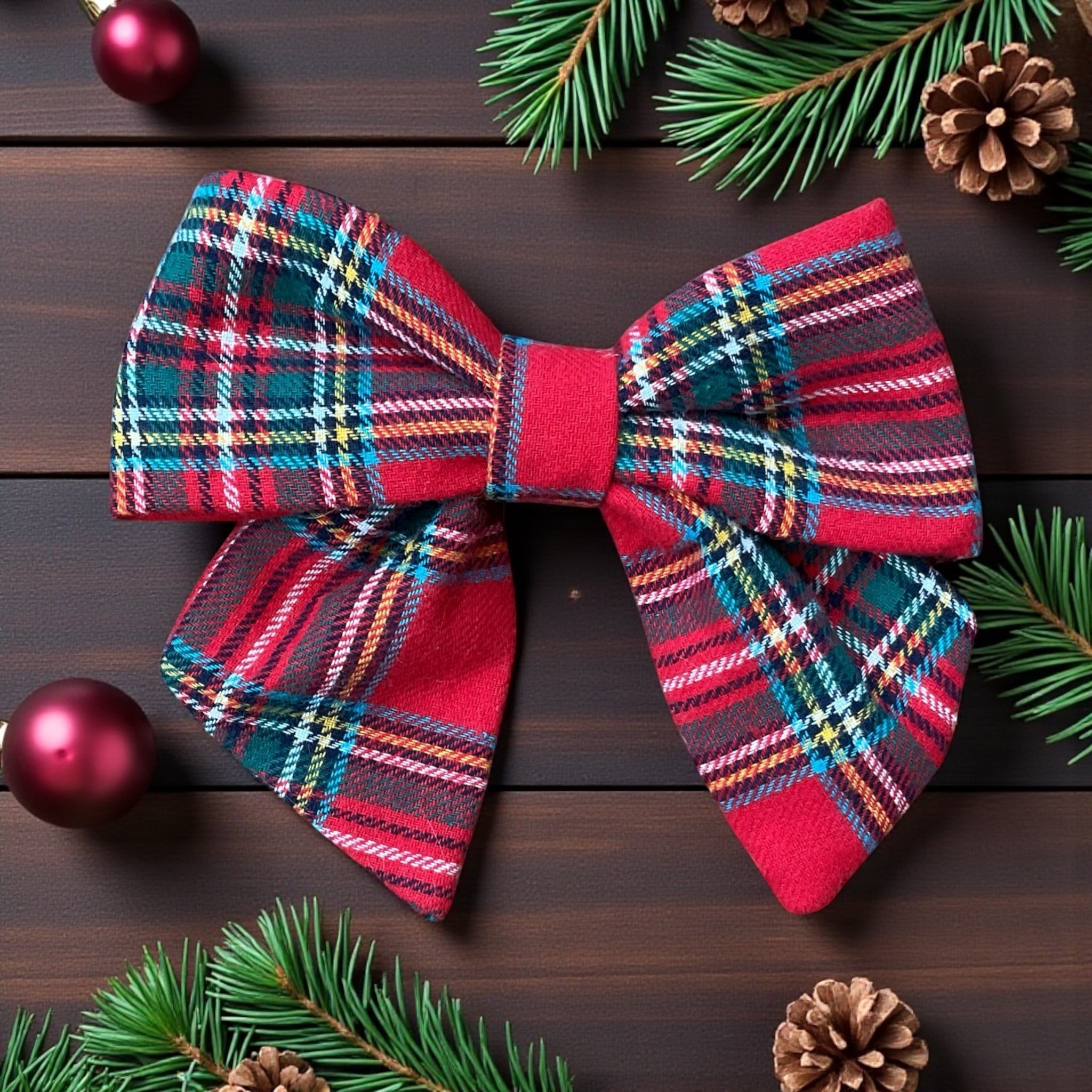 Make your pup the star of the season with our Red Tartan sailor Bow