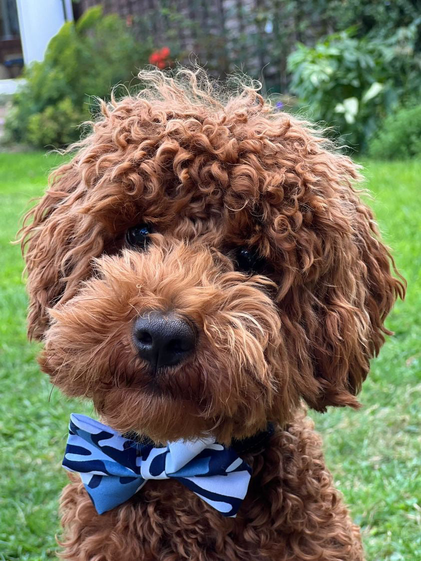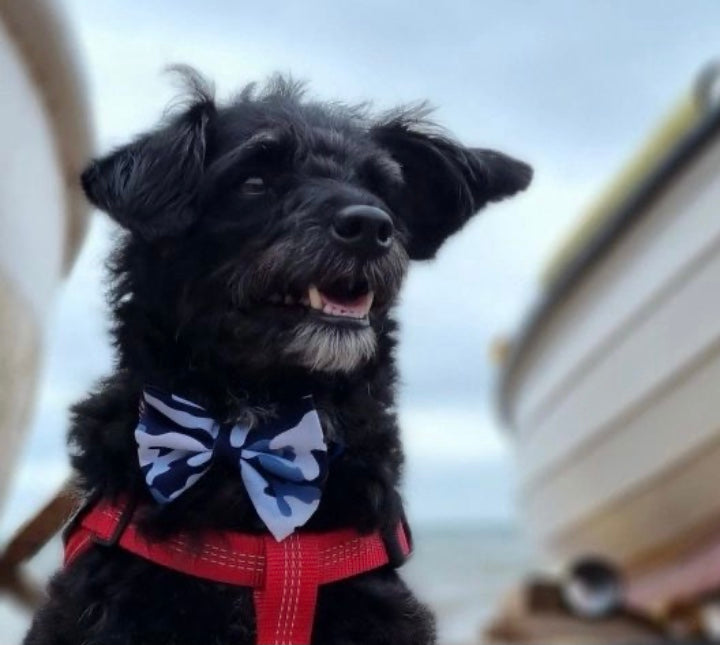 Bows modelled by Bertie and Bear wearing small and Jeep wearing xsmall