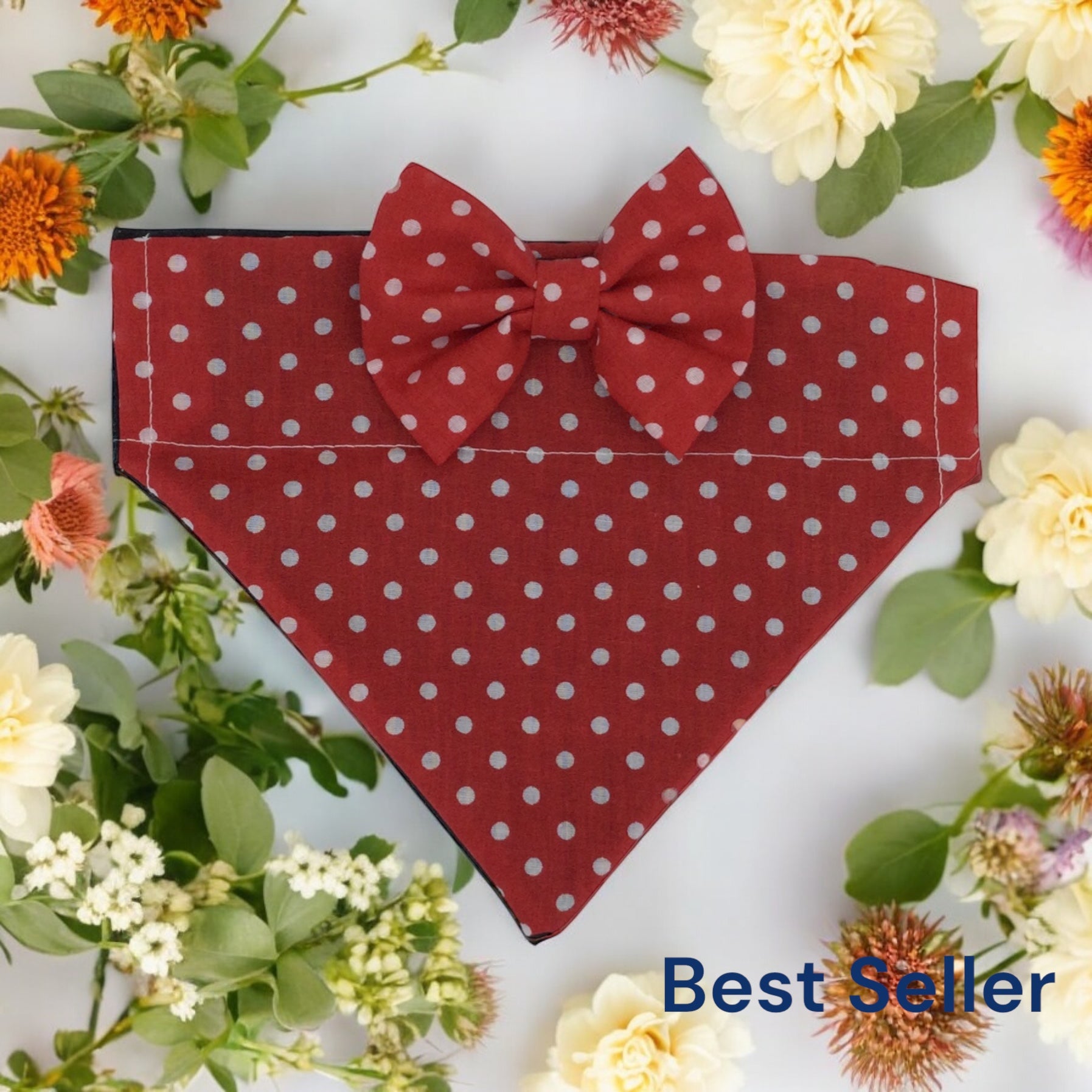 Unleash your pups style with the Red Polka Dot Bows and Bandanas.